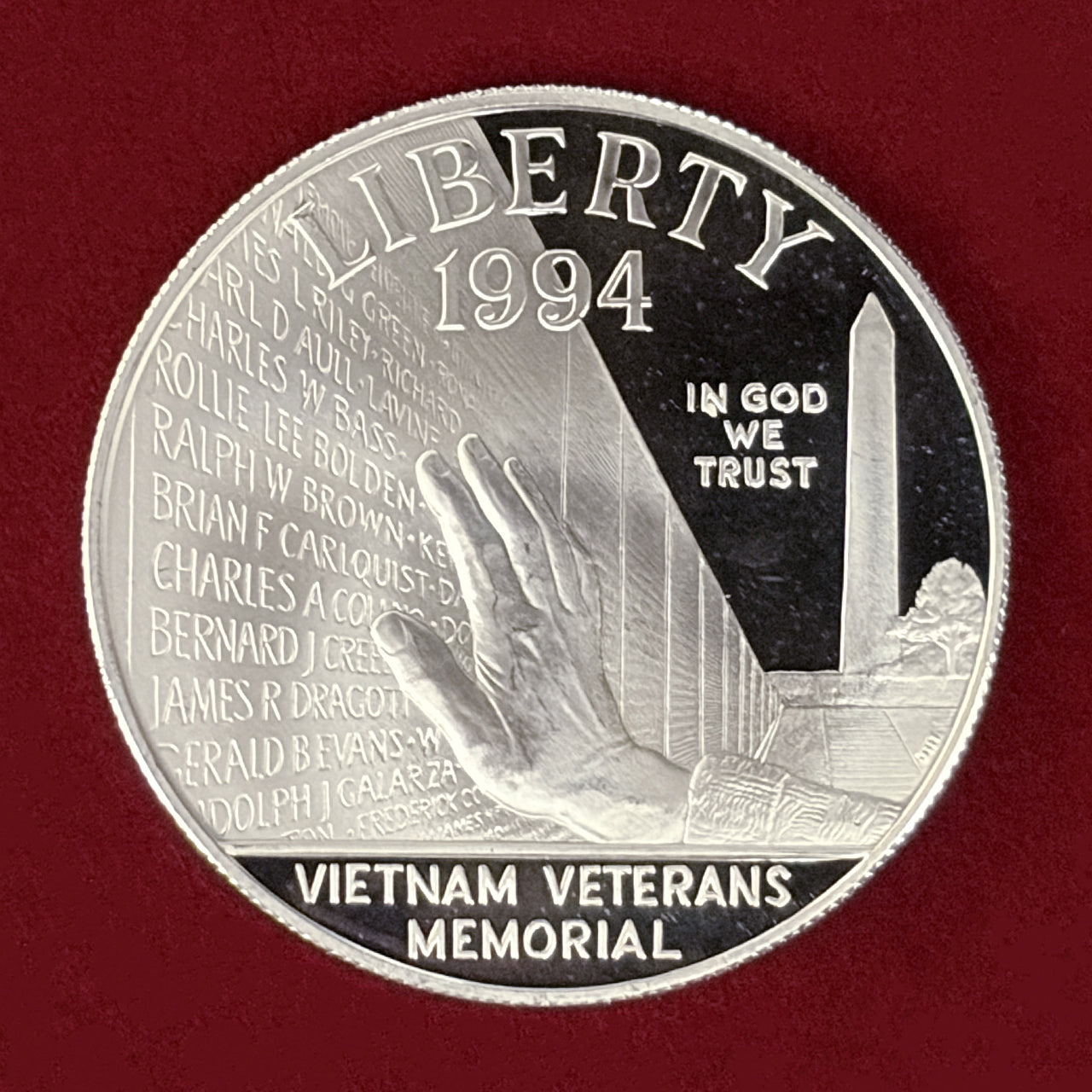 NEW 【アメリカ】ベトナム戦争戦没者慰霊碑 1ドル 銀貨 プルーフ 1994[B-0000771]