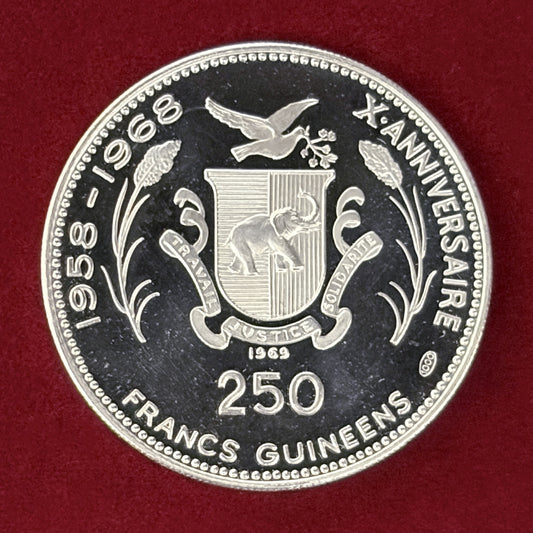 NEW 【ギニア】月面着陸 250フラン 銀貨 プルーフ 1969[B-0000777]