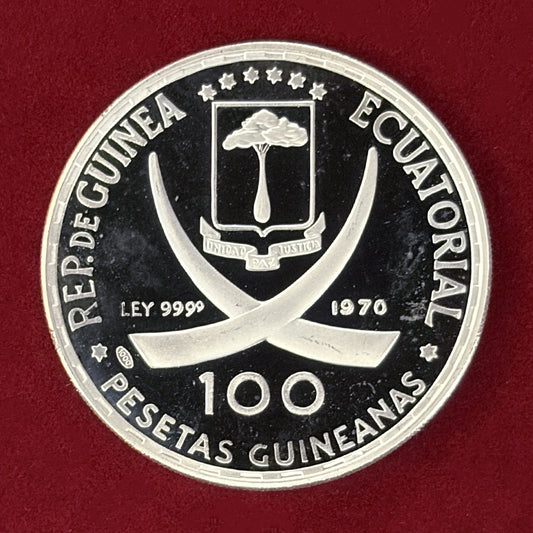 NEW 【赤道ギニア】ゴヤ作「裸のマハ」 100ペセタ 銀貨 プルーフ 1970[B-0000779]
