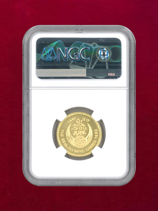 【エジプト】50ポンド 金貨 Barcelona Olympics Archery AH1412(1992) NGC MS 70[A-0000163]