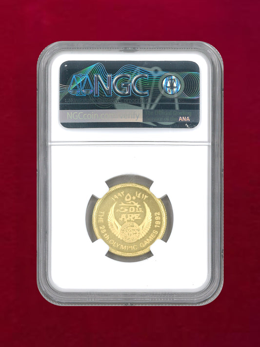 【エジプト】50ポンド 金貨 Barcelona Olympics Wrestling-Ox AH1412(1992) NGC MS 70[A-0000162]