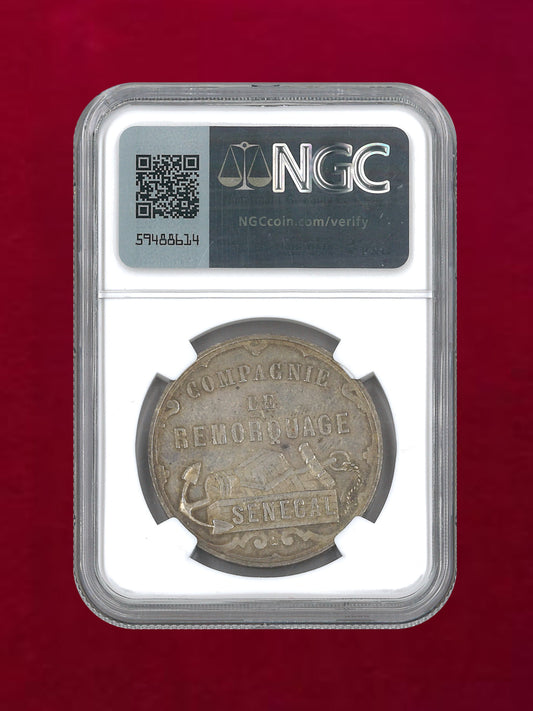 【セネガル】SILVER BEE ON EDGE DAKAR TOWING COMPANY (1860-79) NGC AU 58[B-0000235]