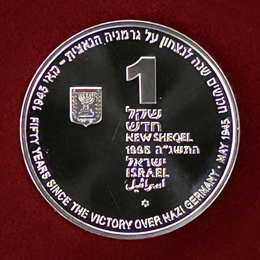 NEW 【イスラエル】ヨーロッパ戦勝50周年記念 1シェケル 銀貨 プルーフ 1995[B-0000597]