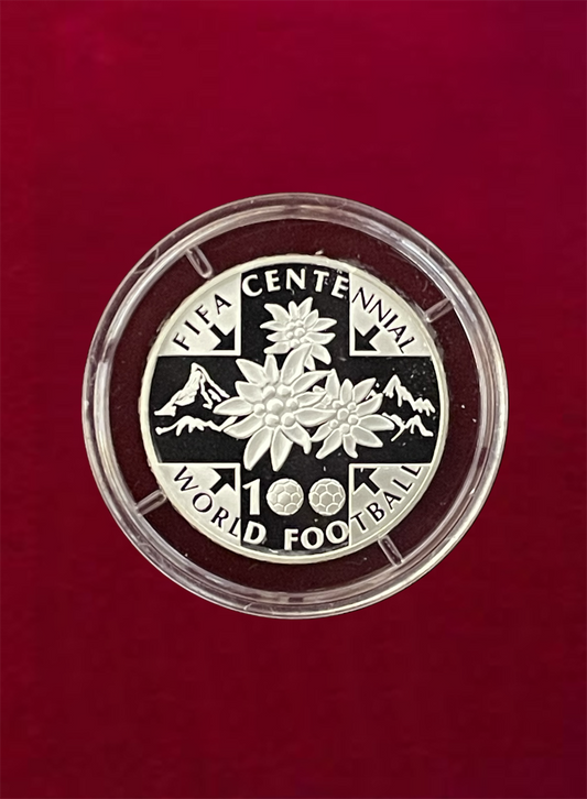 【スイス】20フラン(FRANCS)FIFA100周年記念銀貨 2004 B プルーフ ケース付き[B-0000005]