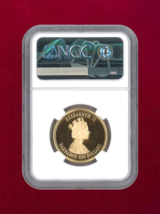 【バルバドス】100ドル 金貨 1989FM PARLIAMENT ANNIVERSARY NGC PF69 ULTRA CAMEO[A-0000040]