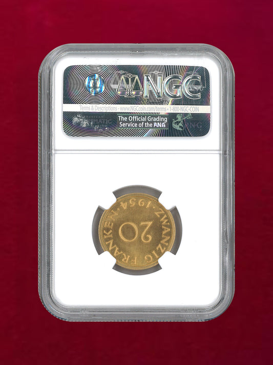 【ドイツ・ザールラント】20フラン 金貨 ESSAI SAARLAND 1954 NGC MS 65[A-0000177]