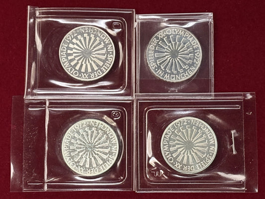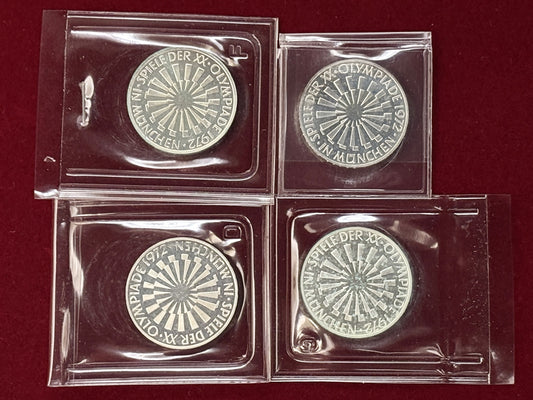 【西ドイツ】ミュンヘンオリンピック ミントセット 10マルク 銀貨 4枚組 1972[C-0000183]