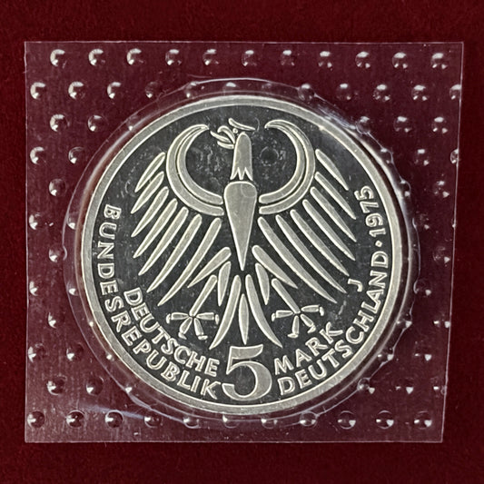 【西ドイツ】フリードリヒ・エーベルト没後50年記念 5マルク銀貨 プルーフ 1975[B-0000550]