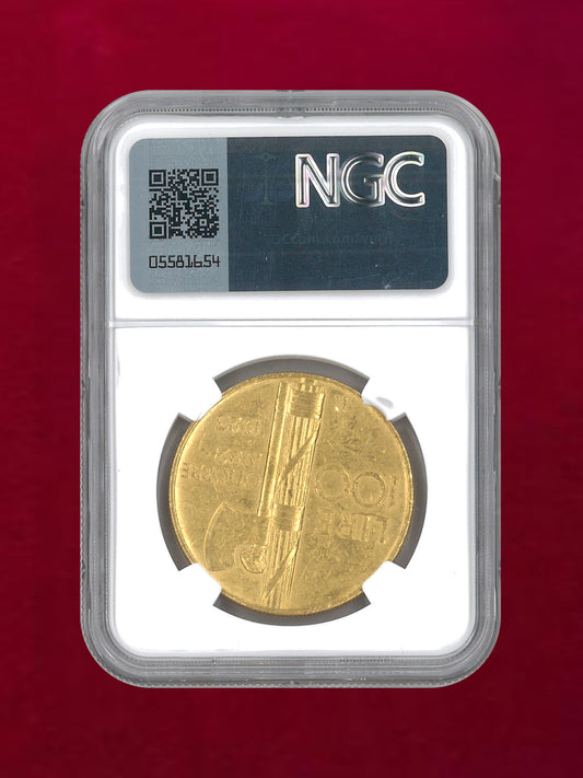 【イタリア】100リラ 金貨 FASCIST ANNIVERSARY 1923R NGC AU 55 MATTE[A-0000098]