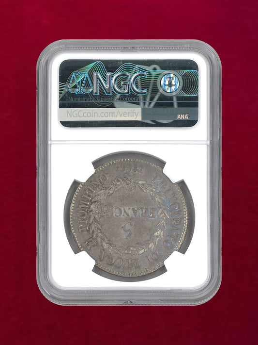 【イタリア・スバルピナ共和国】5フラン 銀貨 L'AN 10 ITALY PIEDMONT SUBALPINE REP. 1801 NGC AU DETAILS CLEANED[B-0000165]