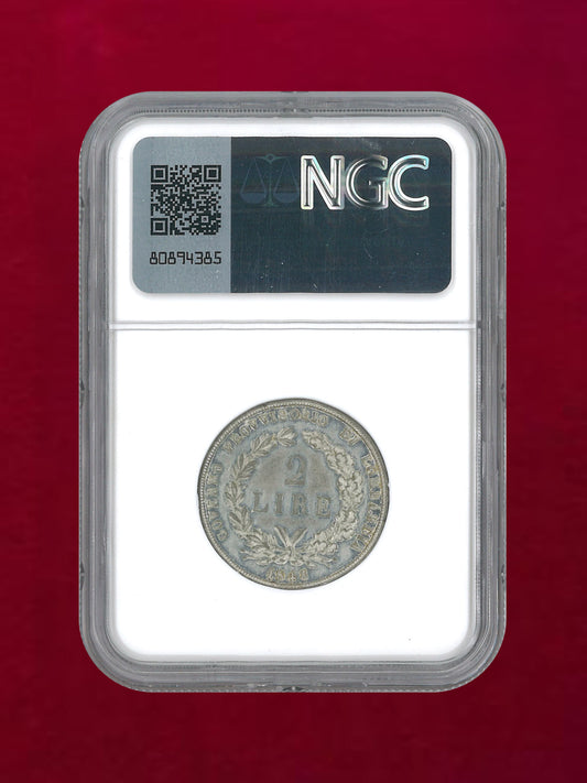 【イタリア・パルマ】5リラ 銀貨 PARMA 1858 NGC UNC DETAILS CLEANED[B-0000252]