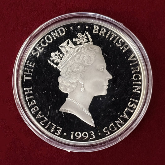 NEW 【英領ヴァージン諸島】ユキヒョウ 25ドル 銀貨 プルーフ 1993[B-0000630]