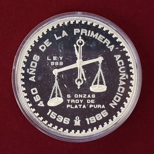 【メキシコ】造幣局創設450年記念 5オンス 銀製メダル プルーフ 1986[B-0000493]