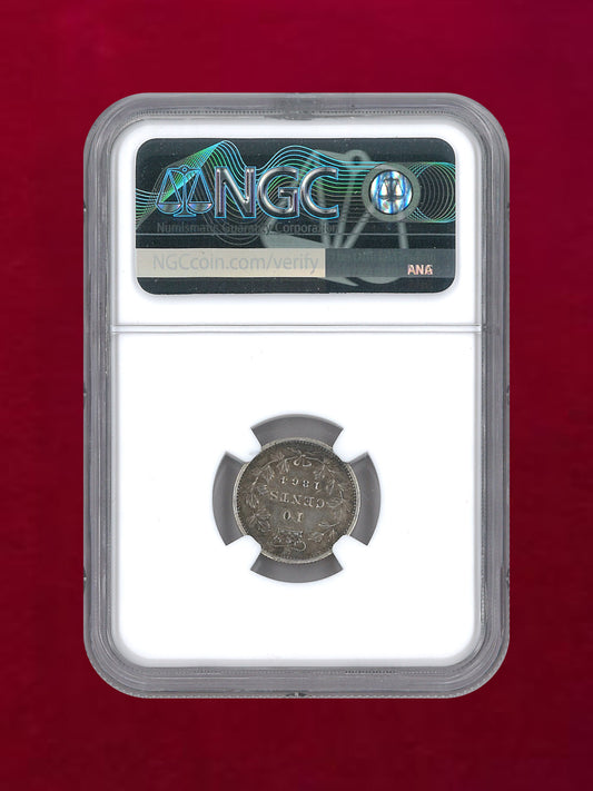 【カナダ・ニューブランズウィック】10セント 銀貨 NEW BRUNC. 1864 NGC AU 53[B-0000218]