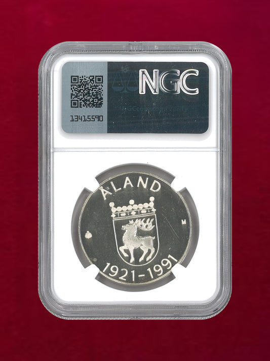 【フィンランド】100マルカ 銀貨 ALAND AUTONOMY ANNIV. 1991 NGC PF 66 ULTRA CAMEO[B-0000164]