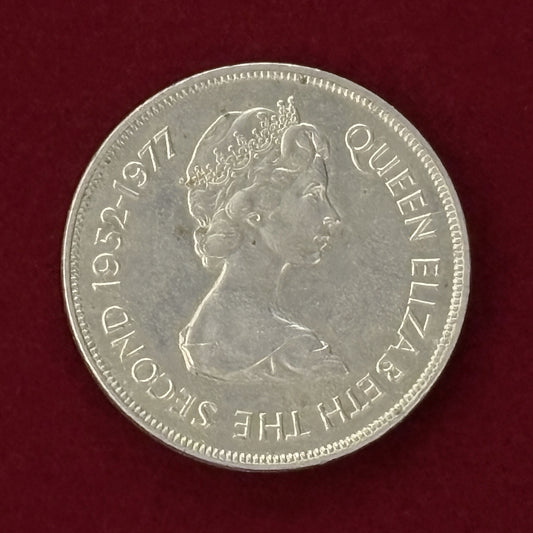 【マン島】エリザベス2世在位25年 クラウン 白銅貨 1977[C-0000668]