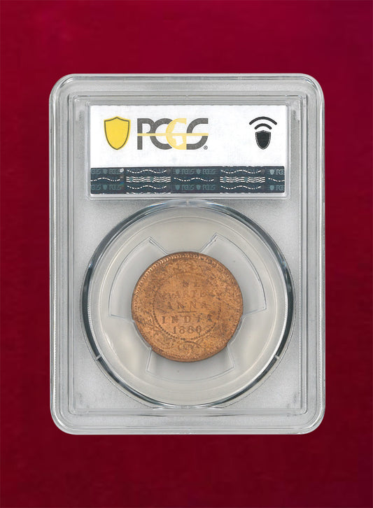[British India] 1/4 anna copper coin 1880-C PCGS MS63RB [C-0000007]
