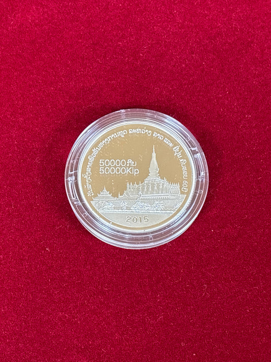 [Laos] 50,000 kip silver coin commemorating 60 years of diplomatic relations with Japan 2015 [B-0000022]