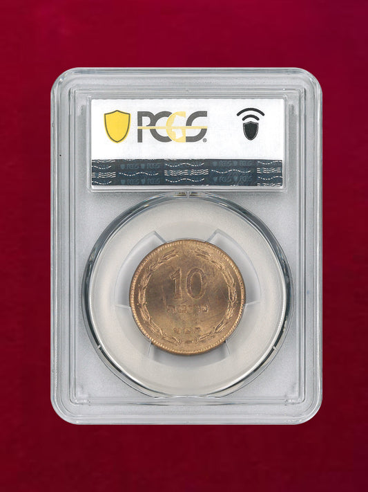 [Israel] 10 Pluta Bronze Coin JE5709(1949) With Pearl PCGS MS64RD [C-0000074]