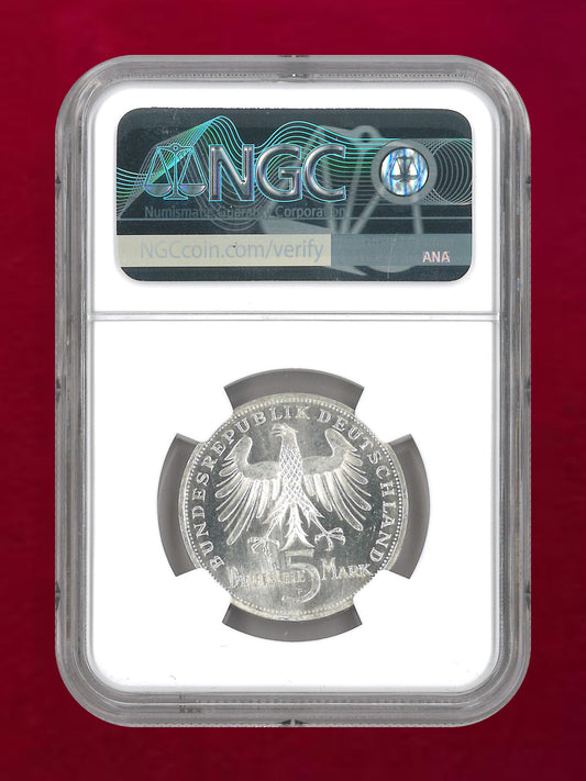 【西ドイツ】フリードリヒ・フォン・シラー没後150周年記念 5マルク 銀貨 1955F NGC MS 62[B-0000794]