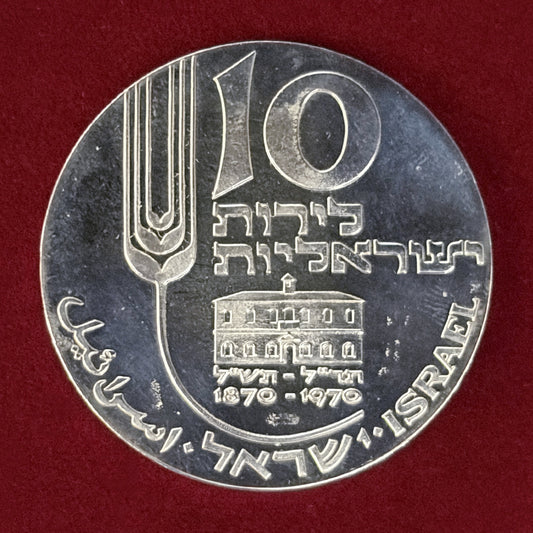 NEW 【イスラエル】第22回独立記念日 イスラエル農業学校100周年 10リロット 銀貨 プルーフ 1970[B-0000833]