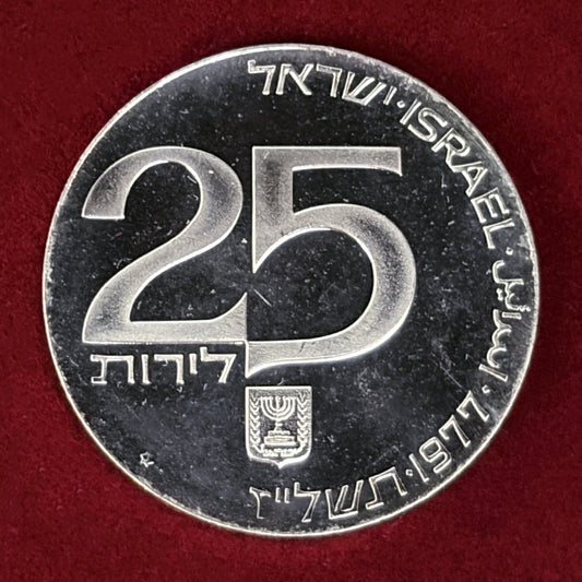 NEW 【イスラエル】第29回独立記念日 エルサレムの兄弟愛 25リロット 銀貨 1977[B-0000845]