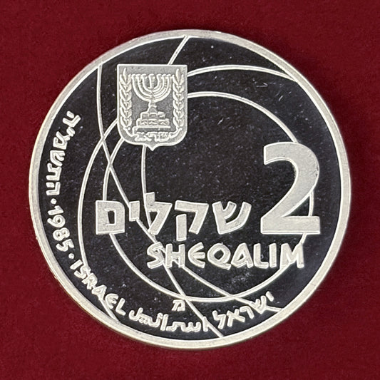 NEW 【イスラエル】第37回独立記念日 イスラエルの科学的成果 2シェケル 銀貨 プルーフ 1985[B-0000846]
