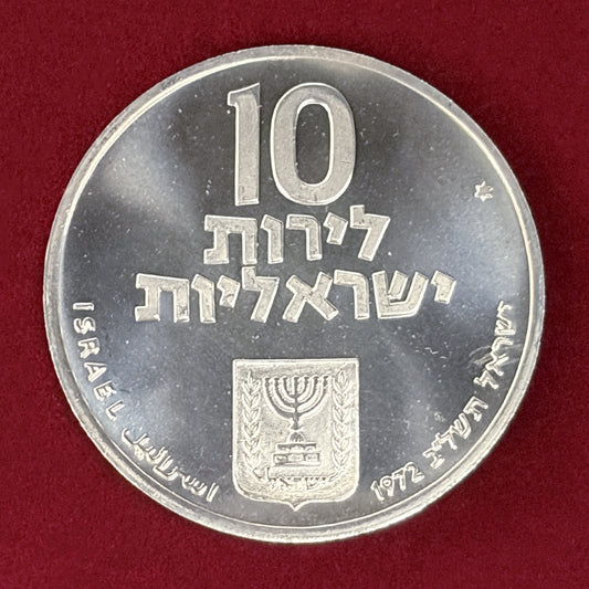 NEW 【イスラエル】第24回独立記念日 10リロット 銀貨 1972[B-0000841]