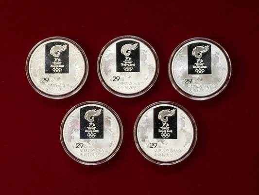 [China] Beijing Olympic Commemorative Silver Medal Set, Regional Design Edition, 5-Piece Set, 2008 [C-0000038]
