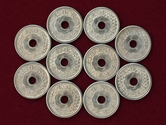 [Japan] Small 5-sen Cupronickel Coin, Set of 10, Taisho 10 (1921) [C-0000596]