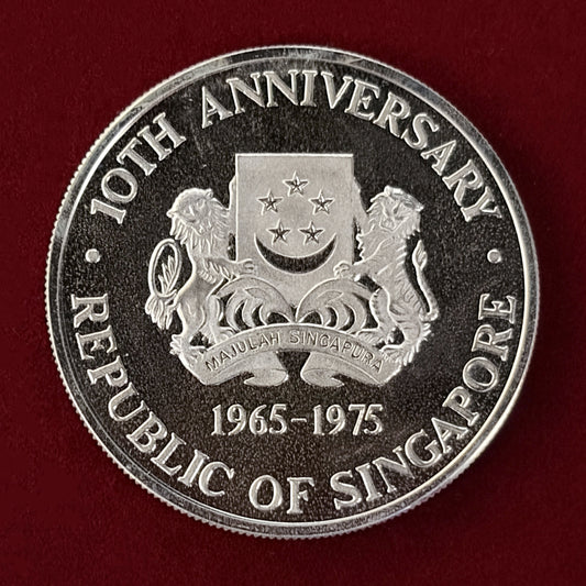 NEW 【シンガポール】独立10周年記念 10ドル 銀貨 1975[B-0000632]
