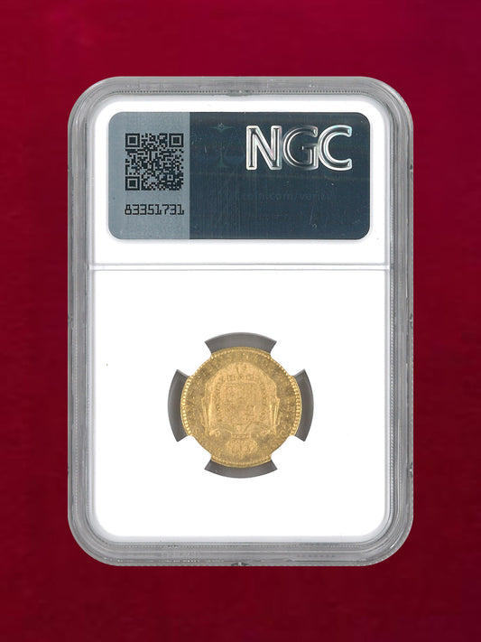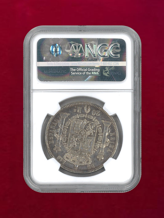 [Spain] 5 Peseta Silver Coin CHARLES VII PRETENDER 1874 NGC AU 58 DATE OBV REEDED EDGE [B-0000265]