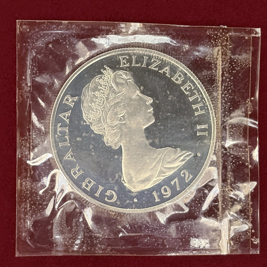 【ジブラルタル】エリザベス2世結婚25周年記念 25ペンス 銀貨 プルーフ 1972[B-0000804]